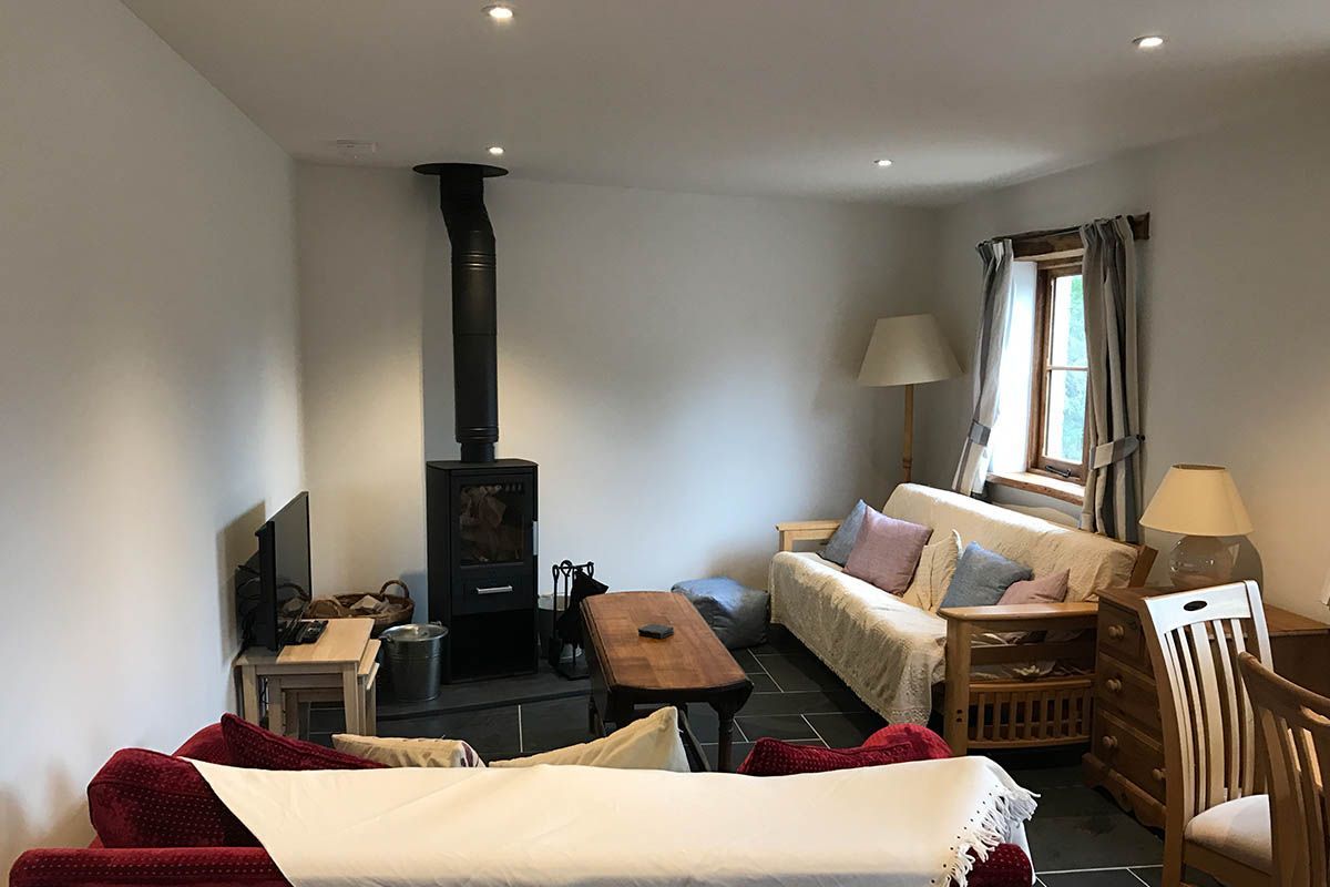 We used stone cladding on a timber frame to tie in with the existing barn. Since the client wanted to make sure the build felt traditional on the inside, too, we incorporated bespoke oak staircases, windows, doors, and frames together with slate floors and woodburners.