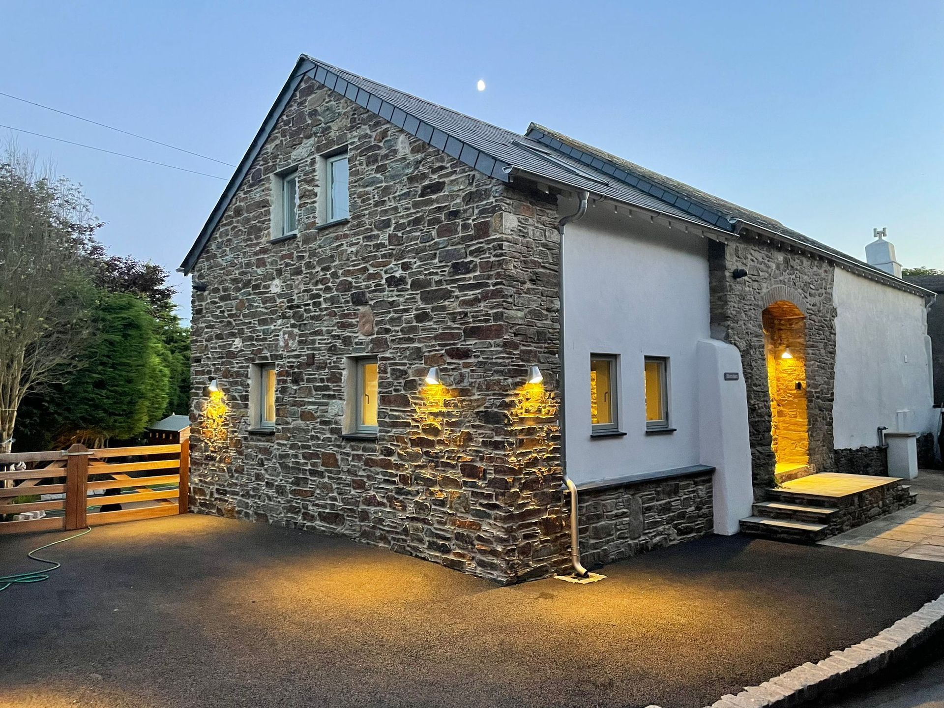 The barn had a kitchen extension added that blends in beautifully with the existing building with the use of local Yennadon stone laid by our own directly employed stone masons.
