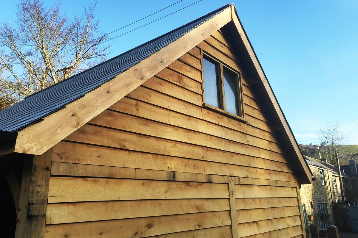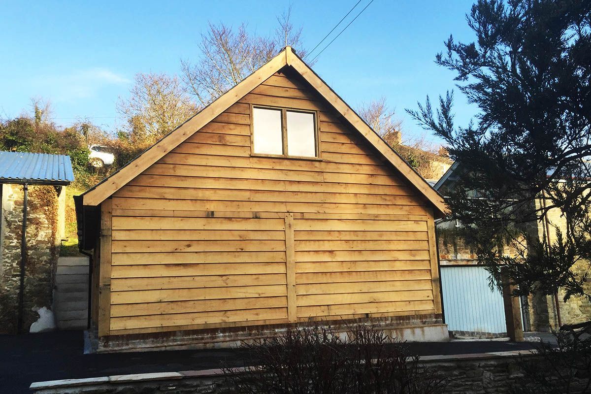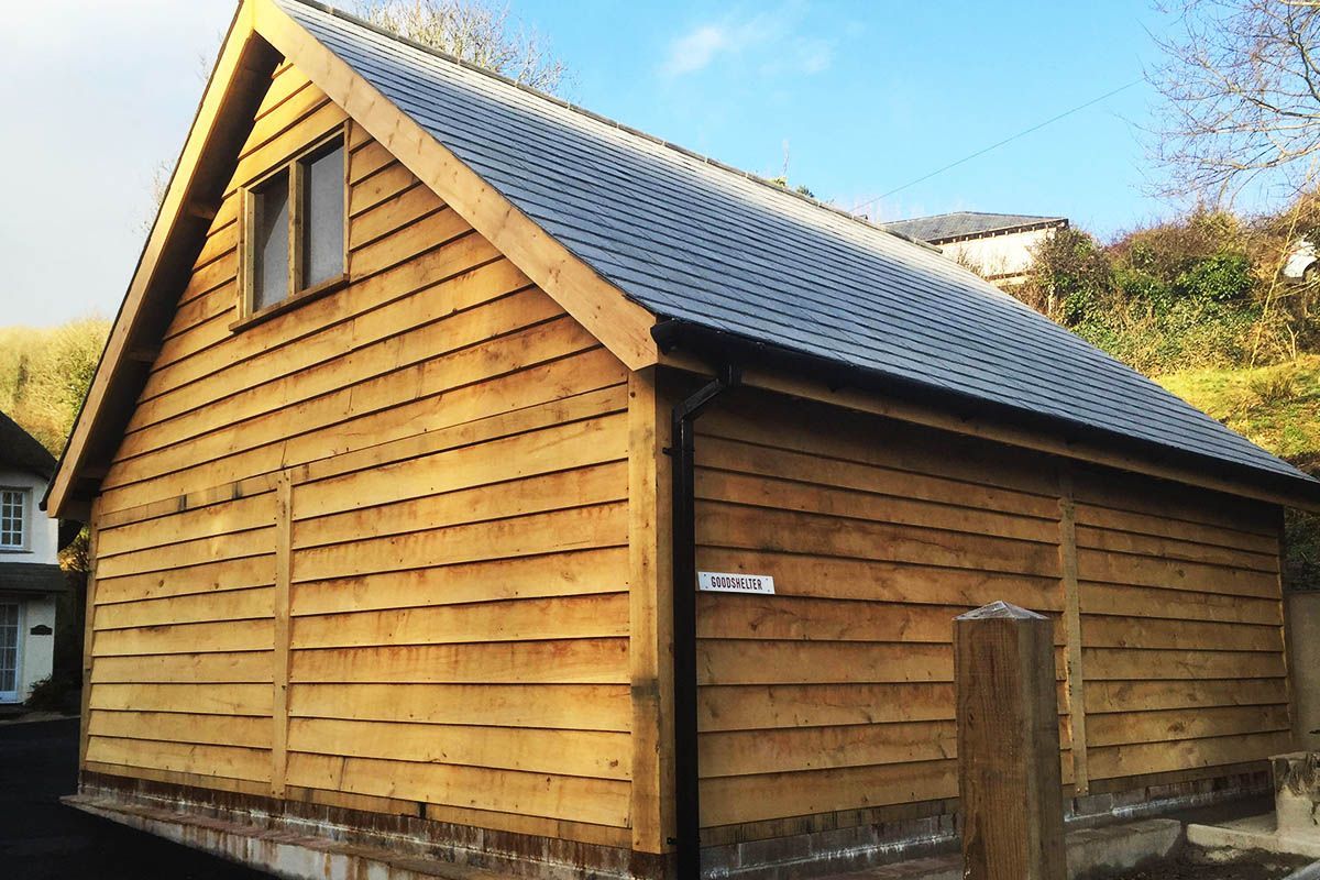 Oak framed carport with additional storage and new tarmac drive at Goodshelter near Salcombe