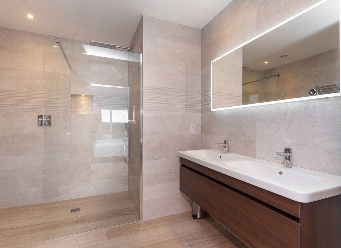 The whole ground floor was tiled with porcelain tiles with a flush internal/external threshold linking with the external porcelain paving also.
