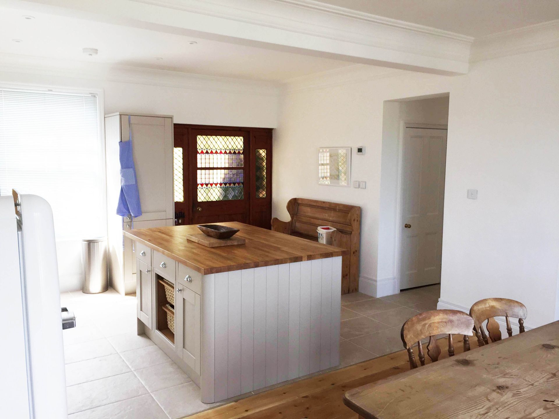 A tricky build with awkward access required a lot of structural work, which included the underpinning of the ground floor walls. We had to prop up the back two-storey-high walls whilst taking out the load-bearing walls beneath and building in new steels to make an open-plan living and office area.