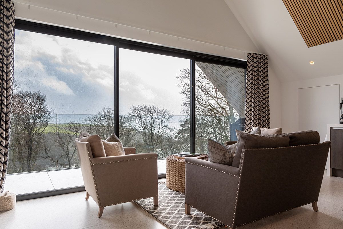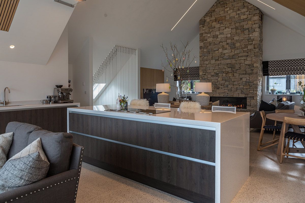 The dwellings were clad externally with a natural Purbeck stone, a Dryvit through-colour render system, and clad with Si-ox-treated Siberian larch.