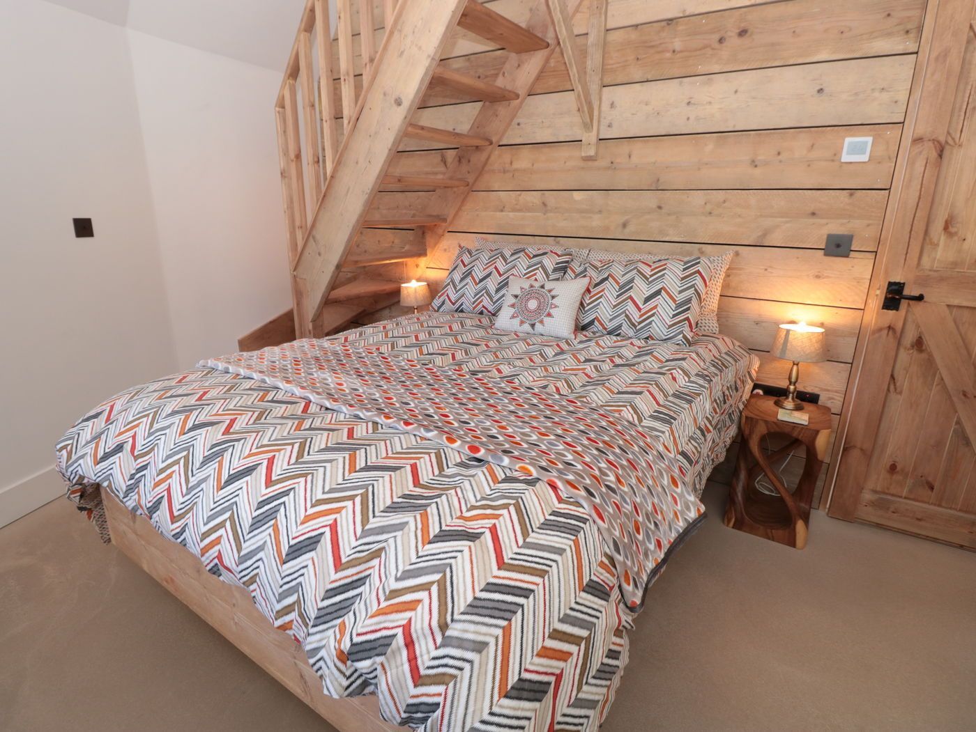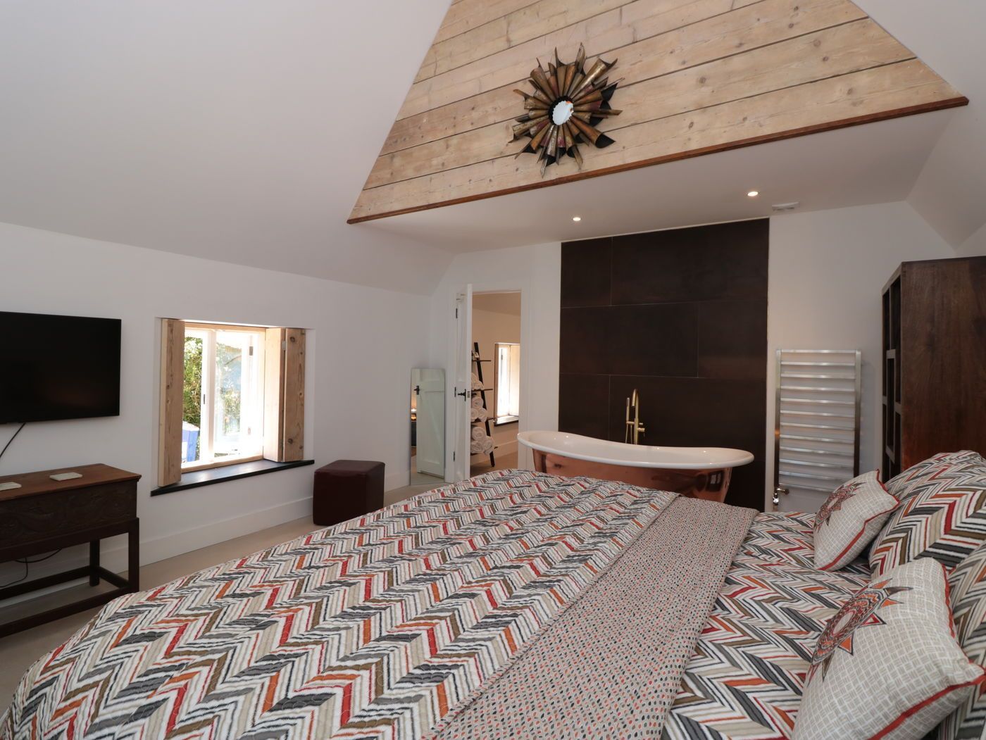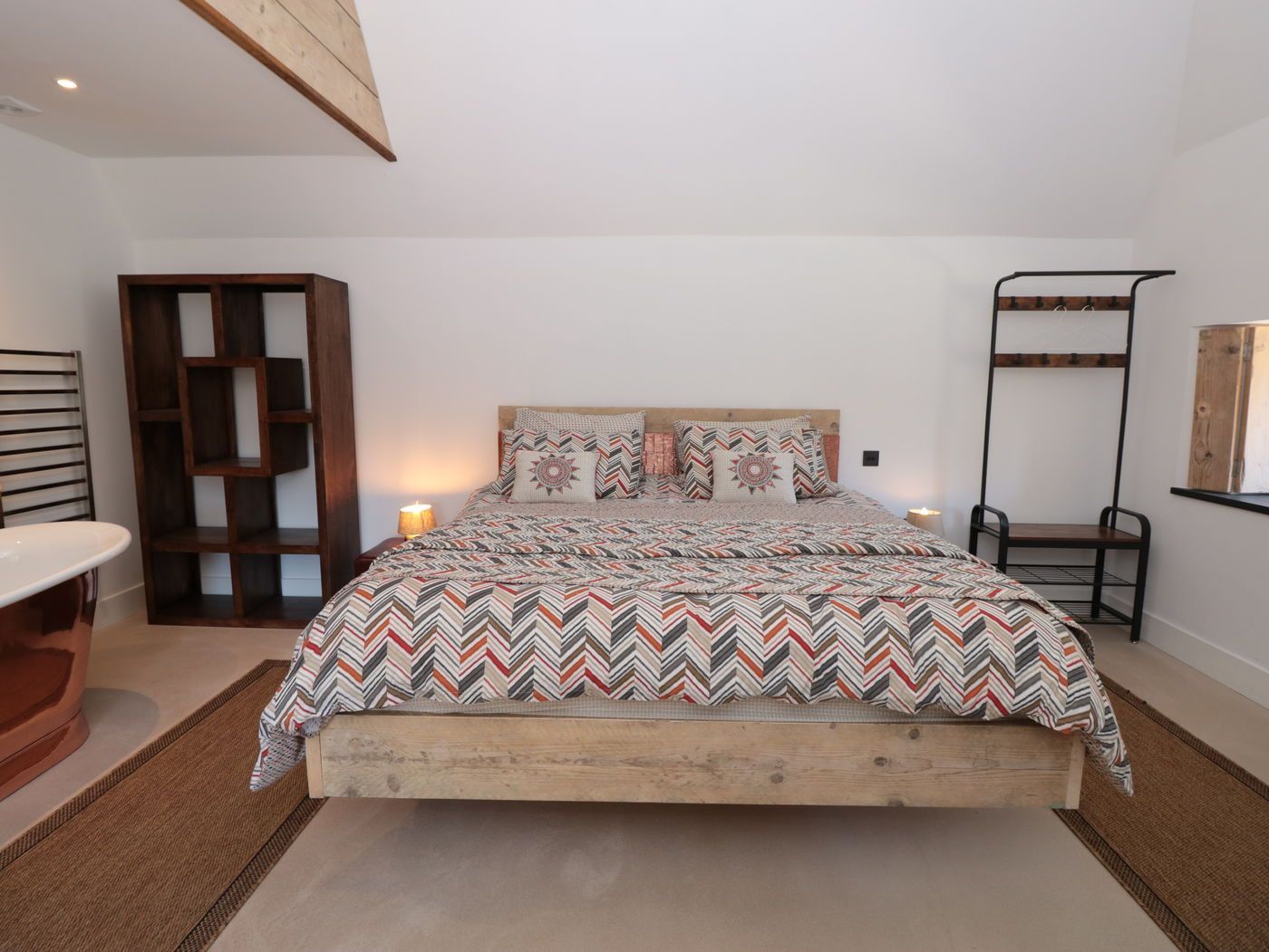 Internally, the finishes were created onsite, making use of all the irregular spaces, and not being able to get much furniture delivered to the second floor, bed frames were made on site to fit the rooms perfectly. The level of finish chosen by the clients and executed by our team has really done this property justice.