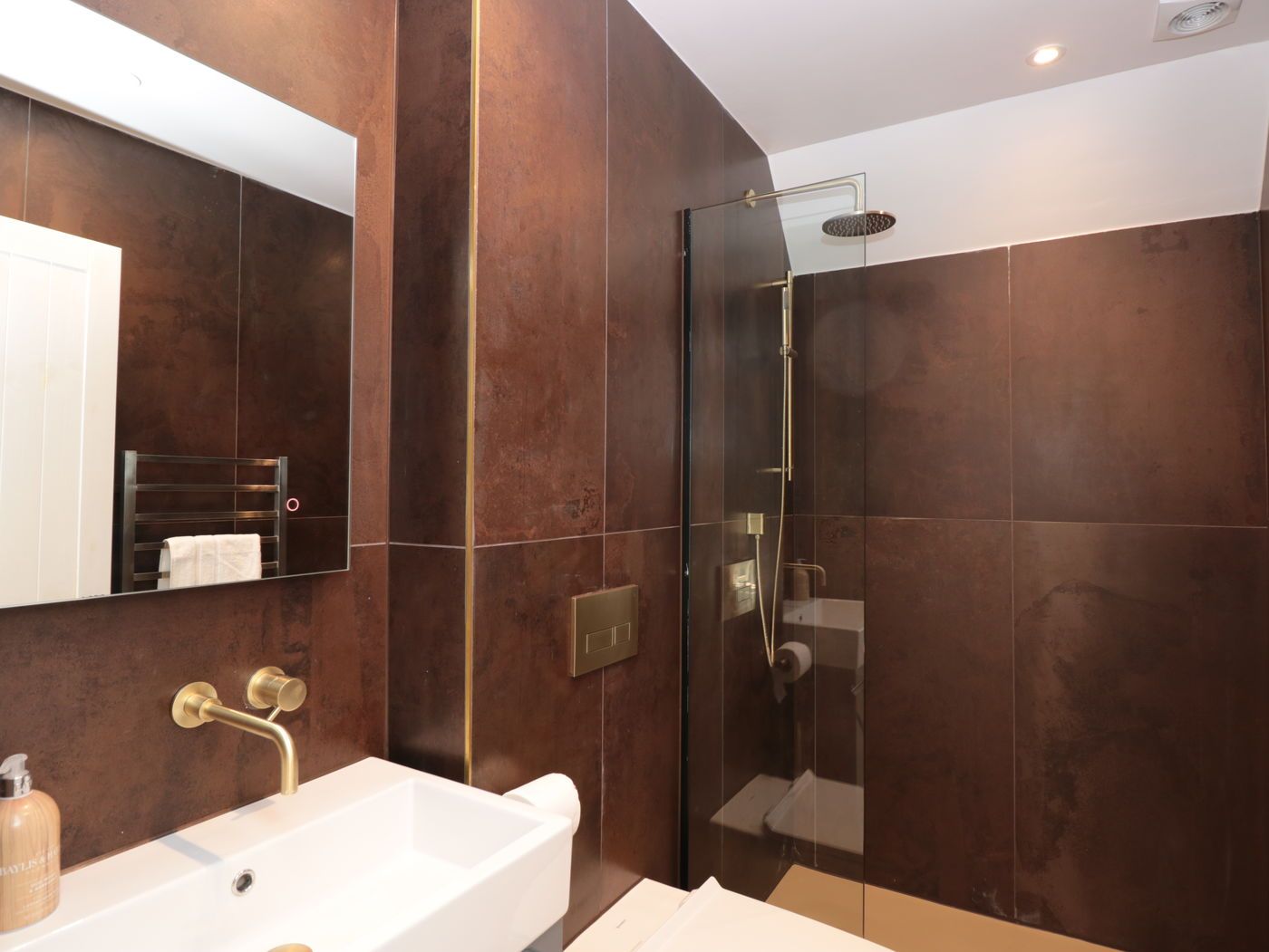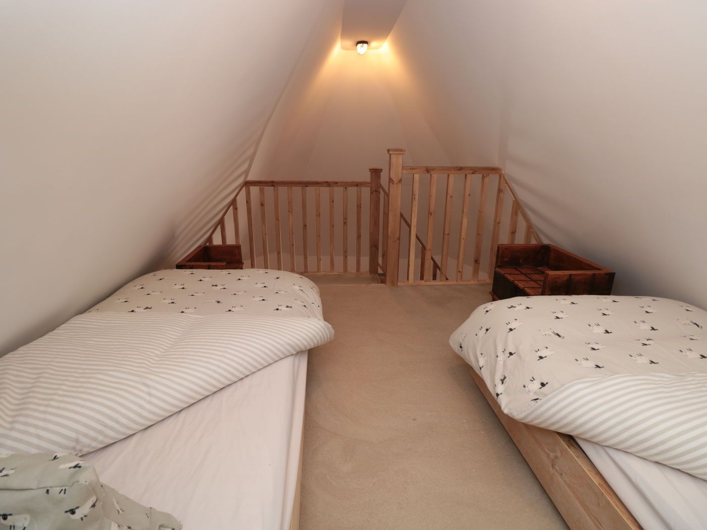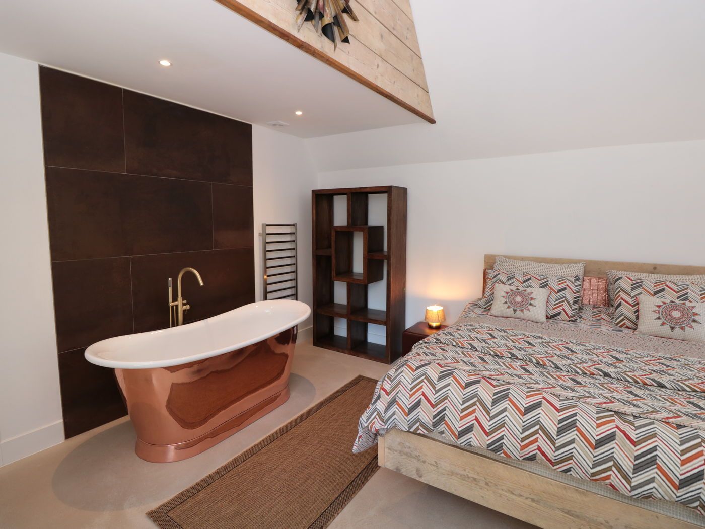 Internally, the finishes were created onsite, making use of all the irregular spaces, and not being able to get much furniture delivered to the second floor, bed frames were made on site to fit the rooms perfectly. The level of finish chosen by the clients and executed by our team has really done this property justice.